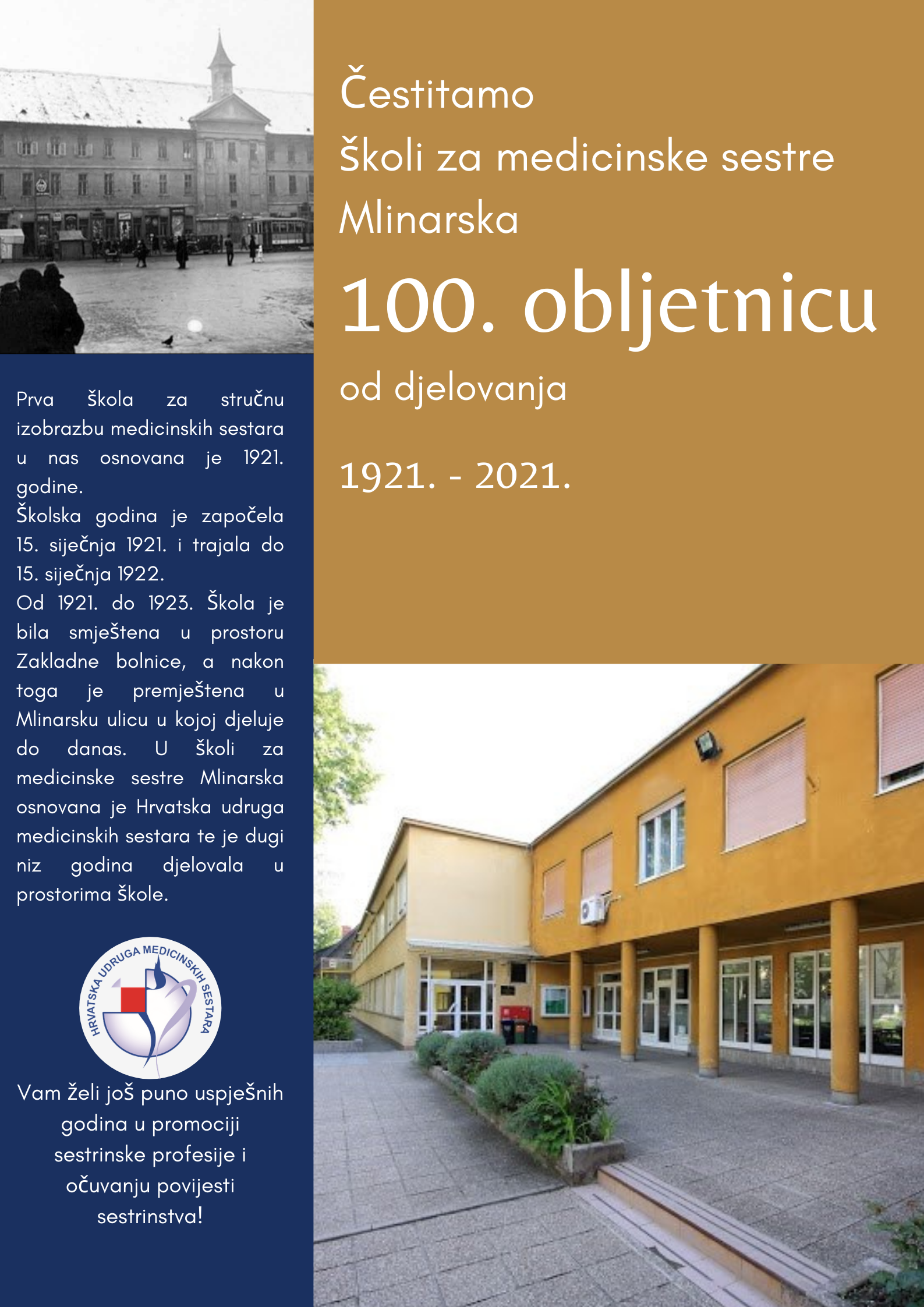 S početkom nove 2021. godine na adresu naše Škole pristižu brojne čestitke u povodu 100. obljetnice djelovanja. Još od 15. siječnja 1921. godine kada je Škola počela sa radom pa do danas, važan smo čimbenik profesionalizacije sestrinstva u Hrvatskoj i vodeća ustanova u obrazovanju medicinskih sestara! Između ostaloga, Škola je oslonac i partner brojnim sestrinskim udrugama. Posebice izdvajamo Hrvatsku udrugu medicinskih sestara i njihovu čestitku koju s ponosom pokazujemo i na kojoj iskreno zahvaljujemo!