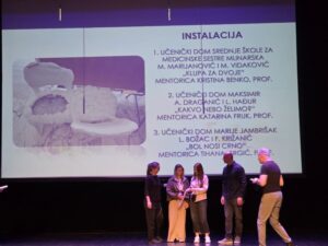 - učenicama Mihaeli Marjanović i Marijeli Vidaković za osvojeno 1. mjesto stručnog žirija za instalaciju “Klupa za dvoje” i mentorici Kristini Benko