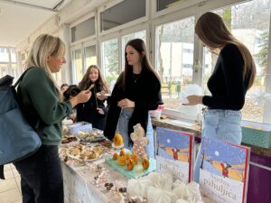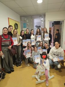 Kruna mojih izvannastavnih aktivnosti je 4. humanitarna akcija Veliki malima koja je ove godine priključena Volonterskom klubu Mlinarska. Moje članice Kreativne skupine Florence Nightingale organiziraju Božićni sajam kojem se priključila profesorica Ivana Perić sa svojim učenicama 2.a razreda i učenicima iz programa TES. Izrađivali su prigodne rukotvorine, svijeće od pčelinjeg voska, papirnate pahuljice, srca prema matematičkoj funkciji i od sakupljenih sredstava kupile 20 božićnih slikovnica Snježna pahuljica Benjija Daviesa koje su čitale i uručile malim pacijentima na Pedijatrijskom odjelu KBC-a Zagreb dana 15.12.2025. Moja suradnica i spona s Rebrom je medicinska sestra Lucija Benković koja predaje predmet Pedijatrija, a rado joj se pridruži i kolegica Krisitna Trandler. Nema ništa toplije i ljepše nego gledati naše učenice, prvašice i drugašice, buduće medicinske sestre s kolikom milinom i ljubavlju prilaze malim pacijentima, čitaju im priču i listaju slikovnice koje im onda daruju. Svi se vratimo punog srca u našu Školu ozareni sjajem božićnog duha koji nas spaja jer je svatko, i od učenika, i od kolega, na neki način pomogao da i ove godine mali pacijenti dobiju predivne darove – priče.