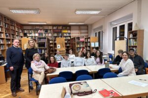 11.12.2025. uronili smo u svijet distopije Orwellovog romana 1984. U goste nam je došao novinar i povjesničar, koji je studirao i filozofiju, Darijo Špelić. Svi smo bili oduševljeni gostom, ali i potreseni orvelovskim svijetom beznađa, terora i misaonoemotivnog uništavanja pojedinca kojeg se mora slomiti kako bi zdušno služio partiji na vlasti. Darijo Špelić je poručio učenicima: „Jedino što vam nitko ne može uzeti, ono je što imate u glavi.“ I tako smo opet došli do polazišne ideje o važnosti čitanja i učenja o društvu u kojem živimo, ali i globalnim sferama koje su i prikazane u Orwellovoj 1984-oj. Kolegice koje su bile sa mnom i učenicima na razgovorima o romanima su: Grozdana Špelić, Lucija Benković, Sanda Franković i Aleksandra Vitez.