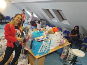Nakon dogovora o akcijama, učenici su imali priliku odmah se uključiti u volonterski rad jer je u tijeku akcija Mlinarska za Šareni ulaz Srebrnjak. Zajednički su zamotavali plišane igračke koje će biti donirane djeci na liječenju u Dječjoj bolnici Srebrnjak. Aktivnost je protekla u veselom i toplom ozračju, a učenici su s puno pažnje i kreativnosti pripremali darove za male pacijente.